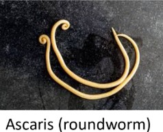 The rest of the parasites, Ascaris (roundworm), Trichuris (whipworm) and Enterobius (tipworm) are all soil transmitting helminth (worms), which essentially means that infection was via a direct faecal-oral route. Lovely.